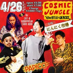 ●平塚 にんにく市場(神奈川県平塚市宝町5-5) ●Open 15:30 Live start 17:00(2set) ●Charge ¥1000+投げ銭 ●LIVE: 『COSMIC JUNGLE feat. Pap […]
