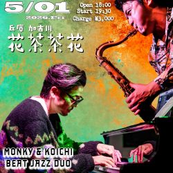 ● 花茶茶花(兵庫県加古郡播磨町南大中3-2-11 2階) ●Open 18:00 / Start 19:30(2set) ●Charge ¥3,000 ●出演 家永”MONKY”慎也(Sax) KOICHI(Keybo […]