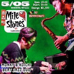 ●南森町 MILESTONES (大阪市北区天神橋2丁目5−15 ヴィヴァンテ南森町 2F) ●Open 18:00 / Start 20:00(2set) ●Charge ¥2,500 + 2order ●出演 家永 […]
