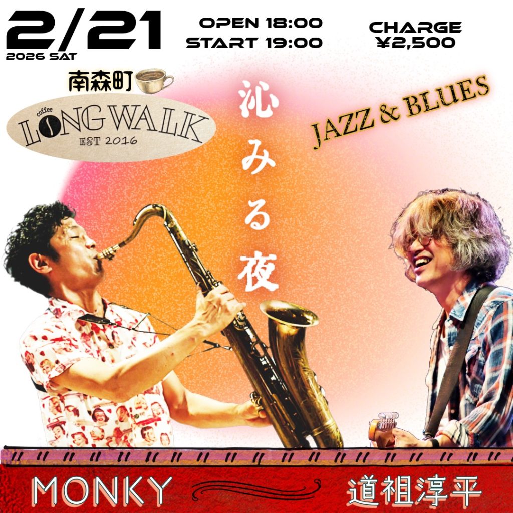 ●1996年のメジャーデビュー以来、27枚のアルバムをリリースし、国内外のフェスやライブハウスで活躍し、スモーキーな音色で魅了するSAX奏者MONKYと、関西の音楽シーンで長年活躍し多くのミュージシャンから絶賛されるギタリスト、道祖淳平のDUO。